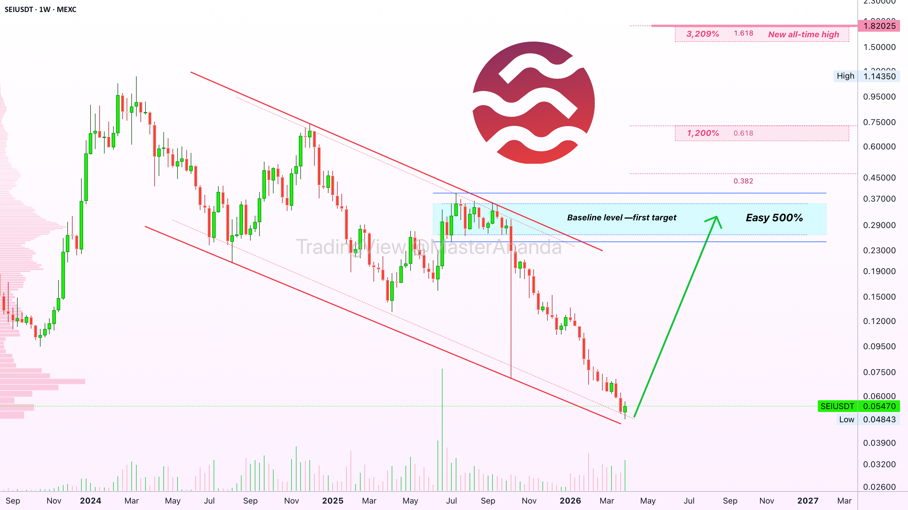 SEI目前正经历整个市场中最强烈的熊市周期之一。本周已创下历史新低,但随着这一低点的到来,市场出现了由高成交量支撑的反转信号。这种底部捕捉的机会为未来的上涨奠定了基础。